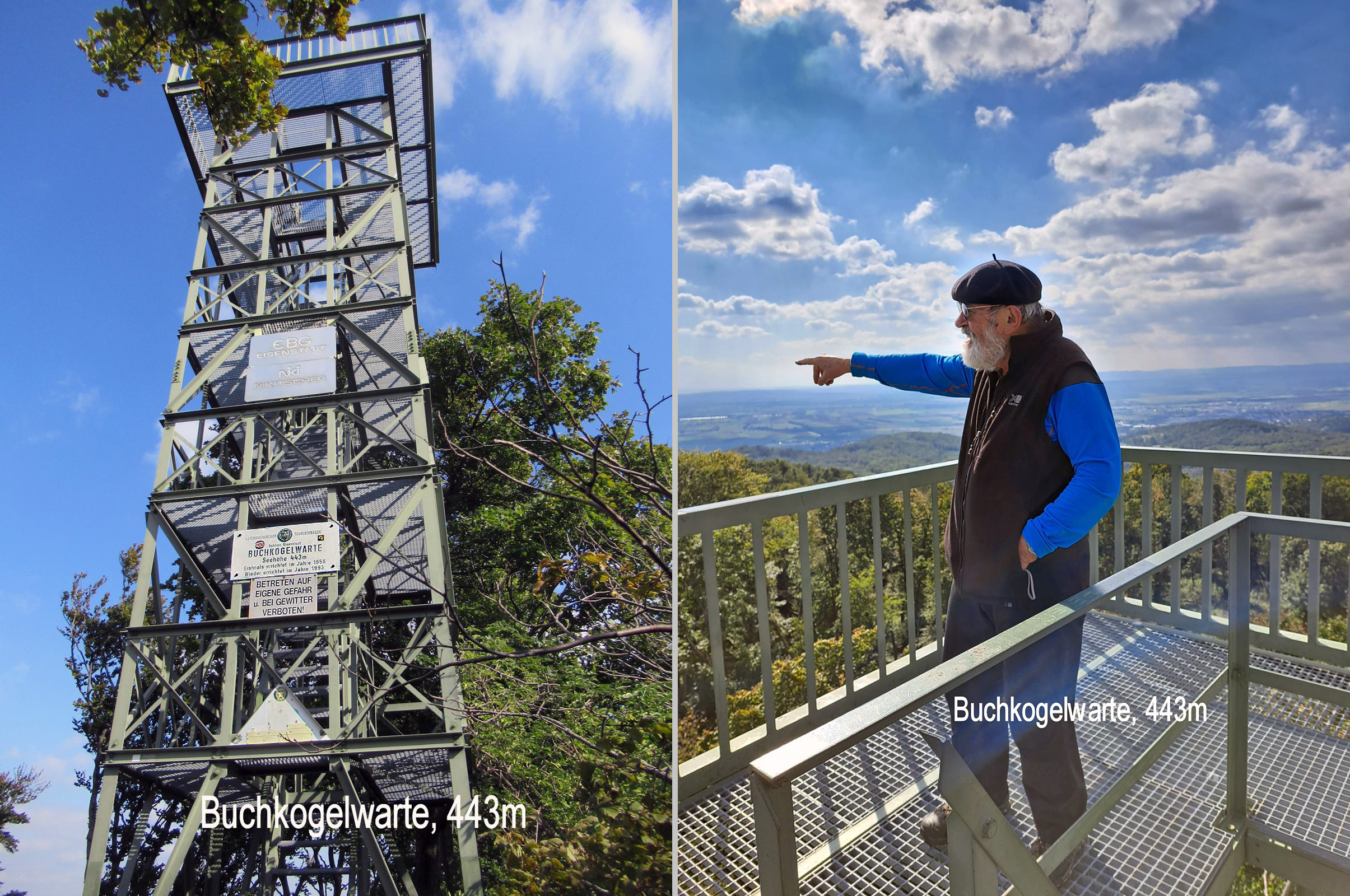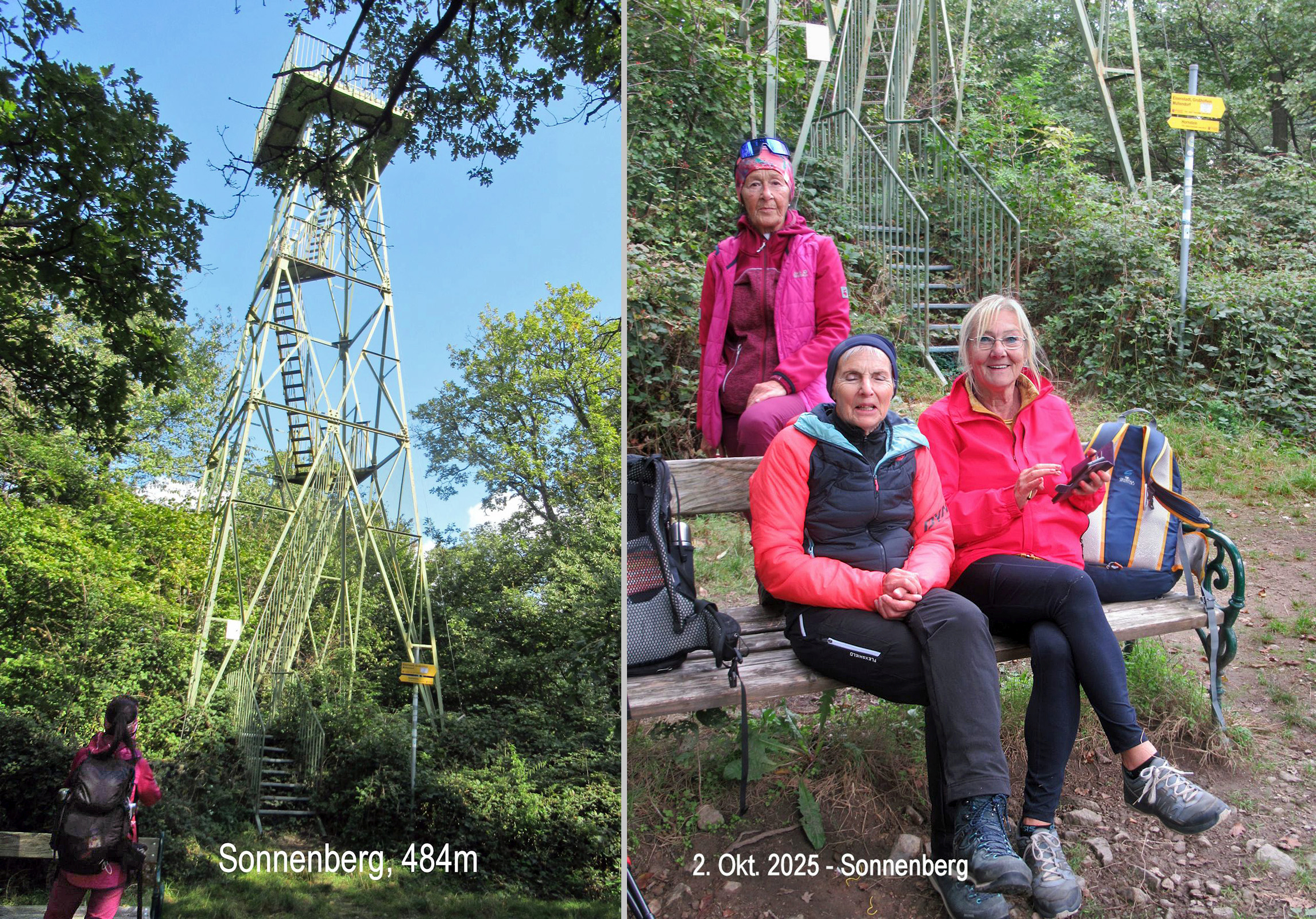 Mit dem dritten Anlauf – nach Glatteis im Jänner und Regen im April – gelingt bei windigem, aber trockenem Wetter die Tour. Nur wenige sind dabei – ein „Dreimäderlhaus“ – begleitet den Wanderführer. Wir starten in Stotzing Richtung Hoher Berg und finden mit etwas Quergang auf den markierten Weg. Eine lange Gerade auf die Höhe des Leithagebirges, die Buchkogelwarte, 443m ist unser erstes Wanderziel. Stürmischer Wind verbläst uns von der Warte, wir tauchen rasch wieder in den Wald ein, wo uns der Wind weniger ankann. Der Weitwanderweg, dem wir nun westwärts folgen, ist zur befestigten Straße ausgebaut, weil auf der Höhe mitten im Wald Windräder errichtet werden. Erst „Beim Juden“ beginnt wieder der gewohnte Steig, wir wandern hinauf auf den Sonnenberg, 484m und die Sonne geht mit – danach ein milder Herbstnachmittag beim Abstieg nach Hornstein. Im Heurigen Jaitz kehren wir ein, das Gasthaus empfiehlt sich wieder vorbeizukommen. Busfahrt nach Wien.